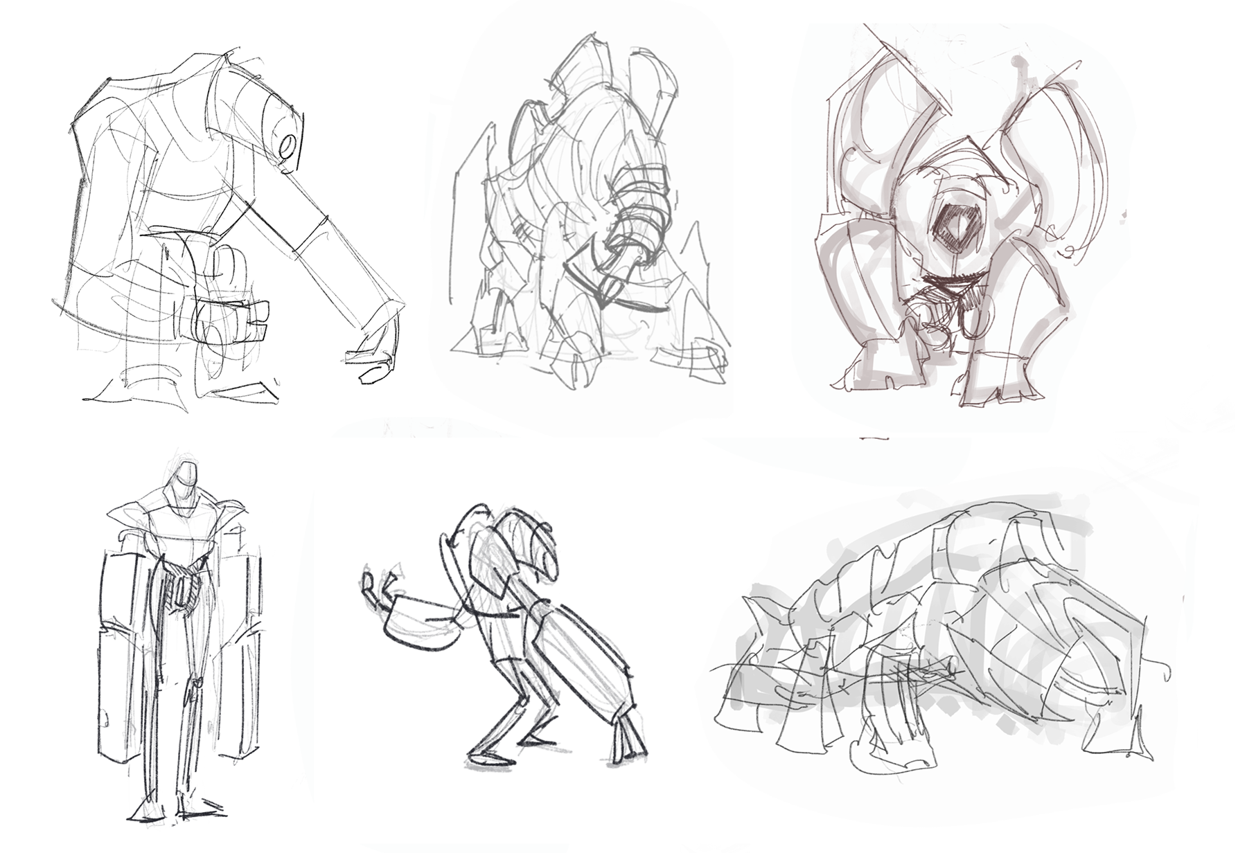 When I design a character or prop, I keep in mind the overall shape it will have: triangles for speed and danger, circles for beauty and calm, squares for strong and slow. Of course you can combine these shapes to get a mix of all three.